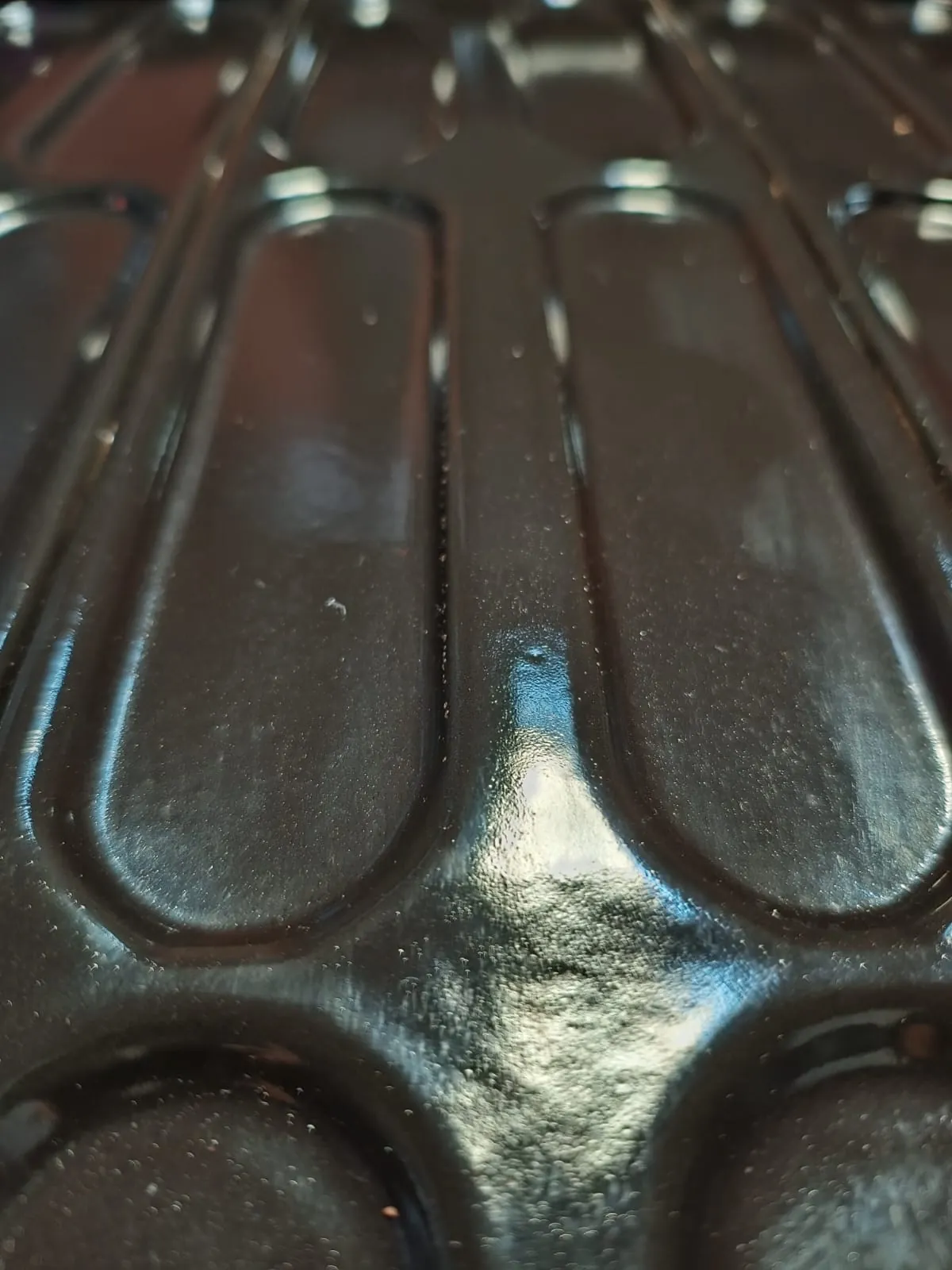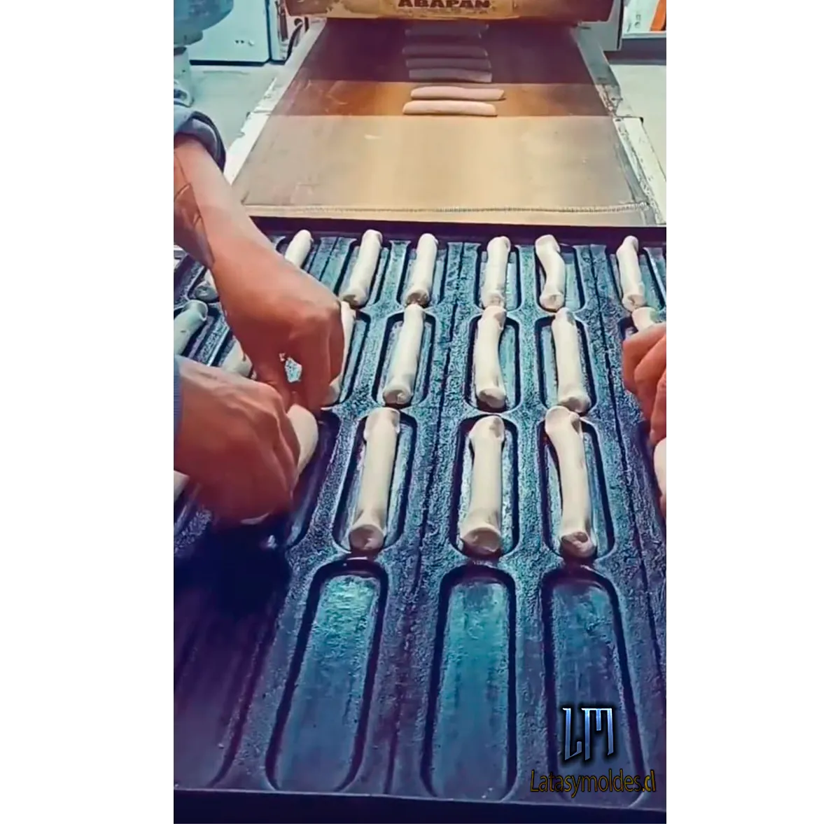 Estas bandejas están hechas de acero al carbono enlozado con moldes estampados para pan de completo, hot-dog o pan Copihue.